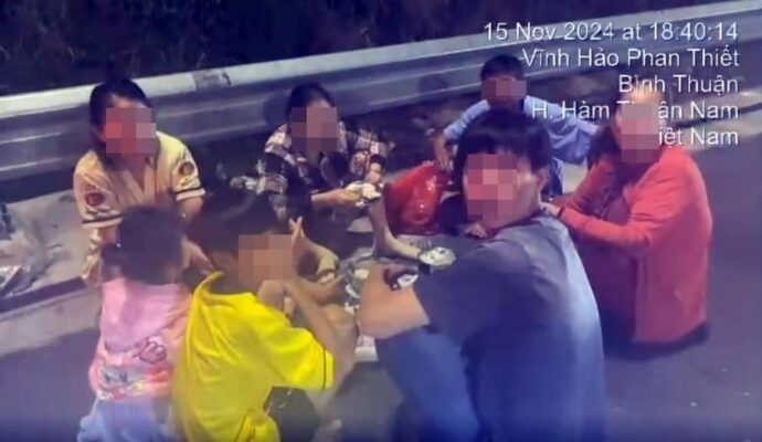 Tài xế cho đỗ ô tô trên cao tốc để gia đình ngồi ăn uống